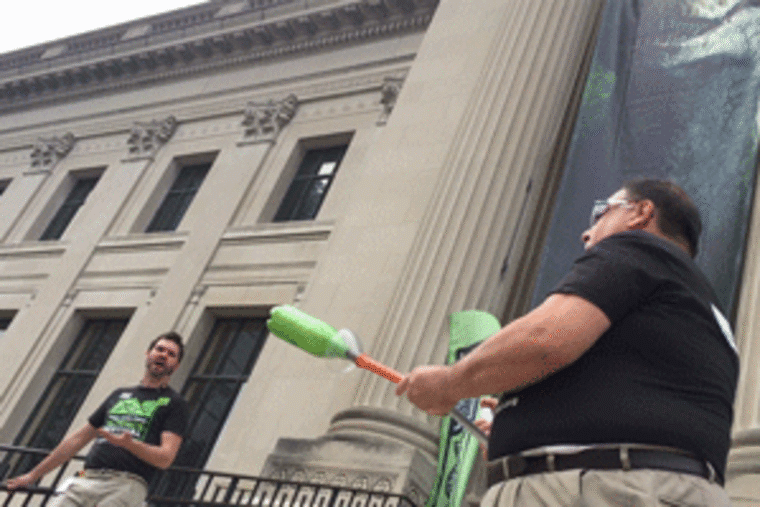 Joe Talento gave an explosive preview of the seventh annual Philadelphia Science Festival, firing plastic bottle rockets from the front steps of the Franklin Institute.
