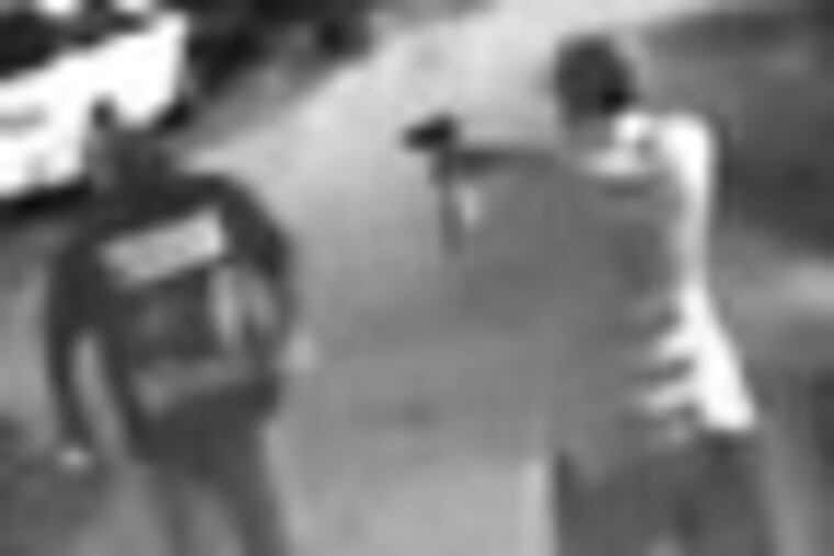 The two assailants were described by police as Hispanic men in their 20s. The gunman, about 5 feet 8, was wearing a light-blue shirt and a Phillies baseball cap, and had tattoos on his neck - lettering on one side, and pictures of money bags on the other, Lt. George McClay, of Northwest Detectives, said last week.