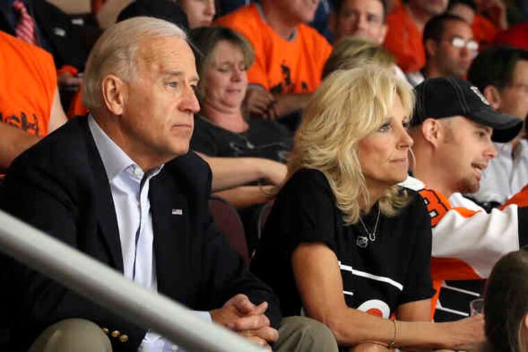 Willow Grove-raised Jill Biden, a huge Flyers fan who hangs a Danny Briere jersey on her door at home for good luck, wore a black No. 48 Briere T-shirt.