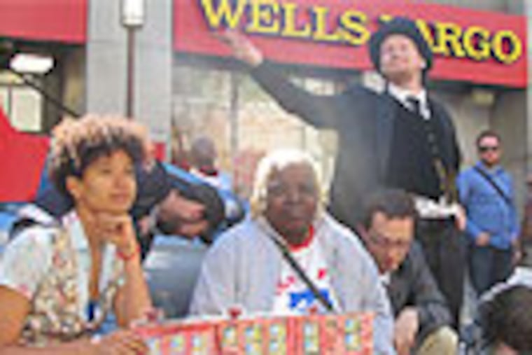 The play, which was performed outside three of the bank's branches in Center City, bases its accusations on a complaint filed against Wells Fargo by the Pennsylvania Human Relations Commission.