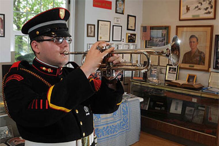 Back at Valley Forge's 100-acre campus, Donelly, dapper in his dress uniform, brought his bugle and trumpet to stately Mellon Hall Monday to perform for this Daily News reporter, who appreciates a damn fine American classic even if the British don't. Donelly blasted the mournful tune in the hall's small museum, reluctant to play outside lest he confuse cadets with the unprompted dirge as they strode to class.
