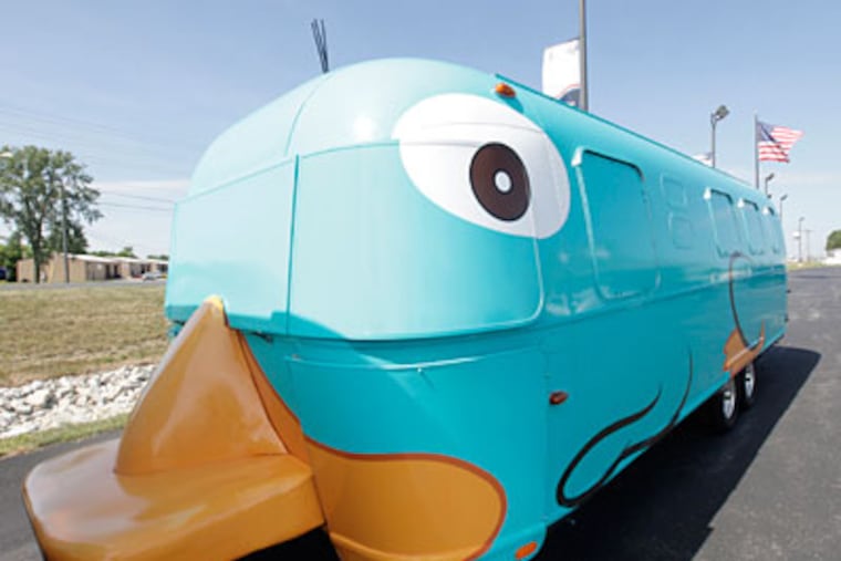 For fans of Phineas and Ferb, the July 11 launch of the Perry the Platy-bus tour would provide all that and more. Disney had turned a 27-foot-long Airstream trailer into a 4,000-pound Perry the Platypus. They hired a local dance troupe, wrote a new song for the event, and brought out show creators Dan Povenmire and Jeff "Swampy" Marsh, who also do the voice-overs for Dr. Doofenshmirtz and Major Monogram on the show. Dee Bradley Baker, who is the voice of Perry, was on hand and recalled his own summer fan quest waiting five hours in line for the premiere of The Empire Strikes Back. (There was no midnight showing.)