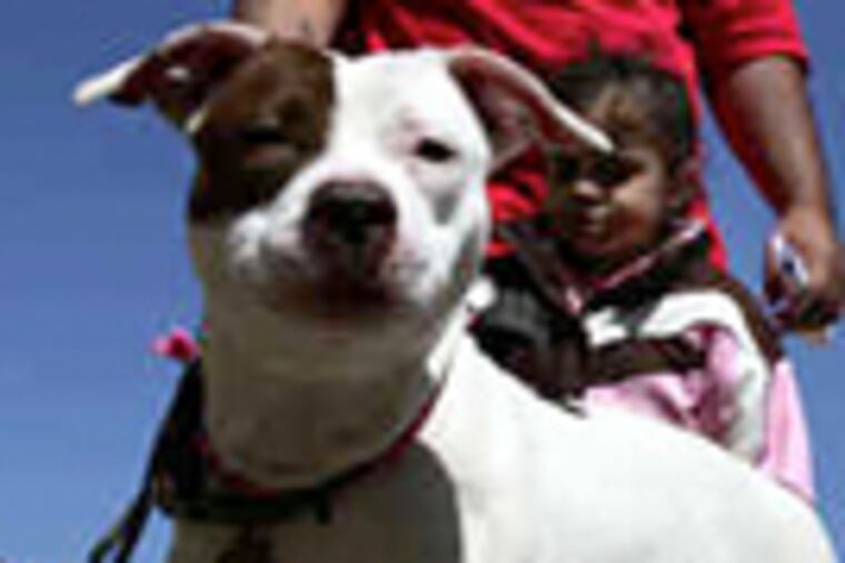 Nearby, Nicole Johnson, 23, and her daughter Raniya Smith, 2, of Northeast Philadelphia, were bonding with a rottweiler named Sunshine.