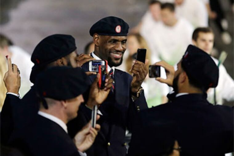 USA basketball star LeBron James tweeted a picture of himself and teammate Kobe Bryant dressed in the nauseatingly preppy, uber-ponied Ralph Lauren opening-ceremony uniforms. Can we grin and bear it? We bet Bryant wishes this were the only pic of him from London, as word on the street is his wife, Vanessa, made a beeline to London after seeing one too many photographs of her hubby with Olympic beauties.