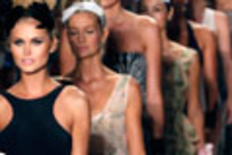 A special presentation of Norma Kamali's swimwear collection included a lace mesh combo on dresses and pants that are washable and wearable. A gown (originally designed for singer and actress Jennifer Lopez) had sparkling rhinestones. A nude fishtail pant creates a slimming effect.