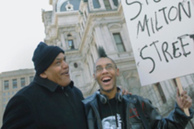 "There's all these movements out here to keep Milton Street off the ballot," Street said atop a stage on the west side of City Hall before the crowd of mostly news media and passing gawkers. "Let the voters decide."