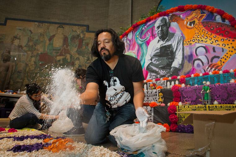 This year, there's music, dance, puppets, sugar skull and mask making, and an elaborate altar with a special backdrop by renowned muralist Cesar Viveros. His last design for the pope's visit to Philly was signed by the pontiff himself. This one honors Mexican muralist Rufino Tamayo and is one of the highlights of the museum's celebration.