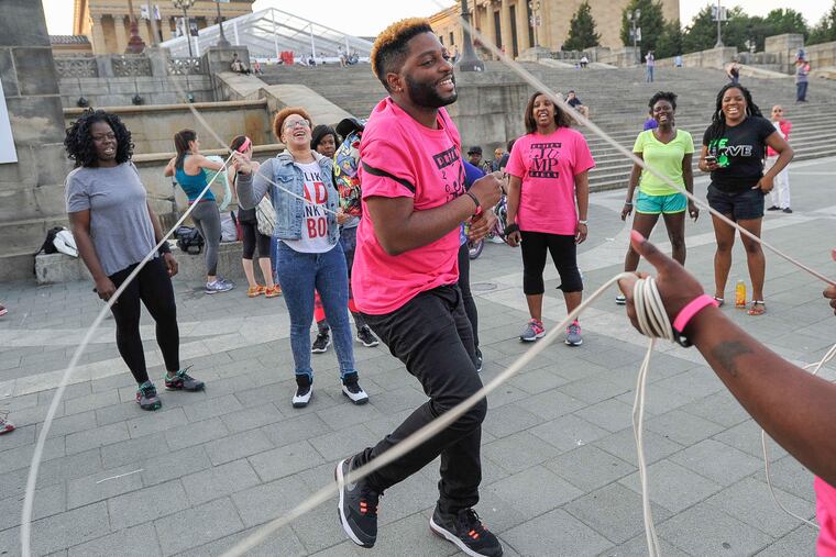 Watching Marshall jump during a meet-up with Philly Girls Jump last week in East Germantown, it didn't seem as if the former high school track star had a problem in the world. All her mind was on was jumping. As two other women turned the ropes, Marshall waited until the perfect moment to dash in and begin jumping. Her ponytail swayed back and forth, keeping time with the rhythm of her feet.