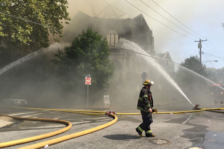 A massive fire Monday morning gutted a century-old Overbrook church that has been both a place of worship and a community center.