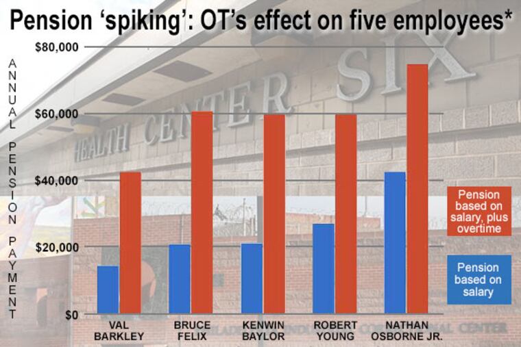 The City of Philadelphia has spent nearly $900 million in overtime during the past five years, partly as a strategy to keep costs down by hiring fewer full-time workers. But a Philly.com analysis shows the strategy is driving up pension payments to thousands of employees.