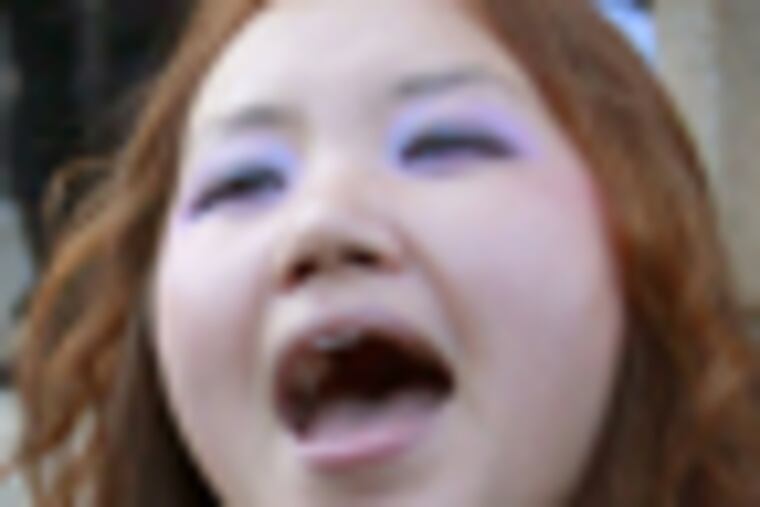 Tania Chairez, 19, a University of Pennsylvania sophomore, and Jessica Hyejin Lee, 20, a junior at Bryn Mawr College, planted themselves atop two banners they put in the roadway at 16th and Callowhill Streets at 3:15 p.m. and refused to move. The spot is directly in front of the Philadelphia offices of U.S. Immigration and Customs Enforcement, the deportation police known as ICE.