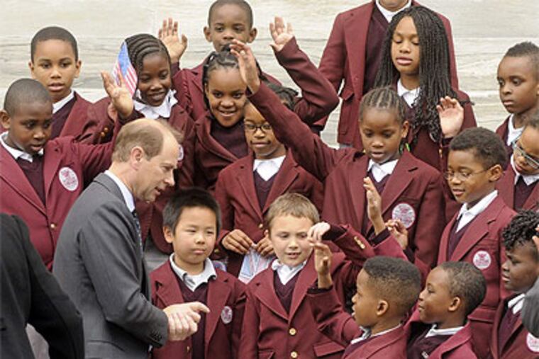 The privileged world in which Prince Edward grew up, a world of palaces, polished silver and nobility’s obligations, could not have been further from that of the students at Girard College, where hardship — both financial and emotional — are among the criteria for admission. But Thursday, when Edward visited Girard, the distance between him and the students who greeted him was easily bridged with handshakes, friendly banter, and some gentle ribbing.