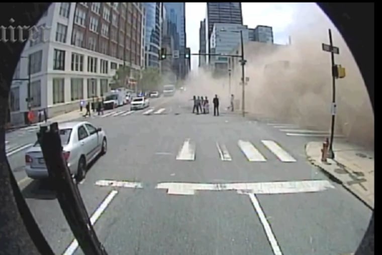 The bus was just west of 22d Street, traveling east on Market. Its security camera captured the only known video of the moment the building went down.