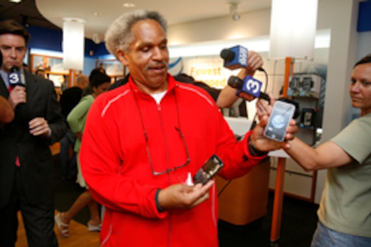Mayor Street, a self-described gadget lover, was so keen to get his hands on Apple's much-hyped new iPhone that he parked himself outside a Center City store at 3:30 a.m. yesterday. Only two other enthusiasts got there ahead of him - for an item that wasn't to go on sale until 6 p.m.