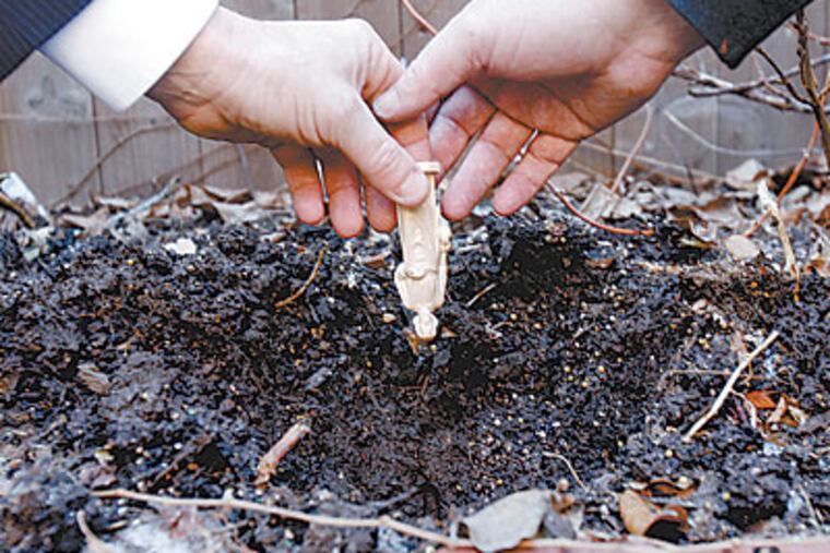 At a Center City townhouse near Third and Lombard Streets, broker Mike McCann and a client buried a St. Joseph in a backyard garden plot.