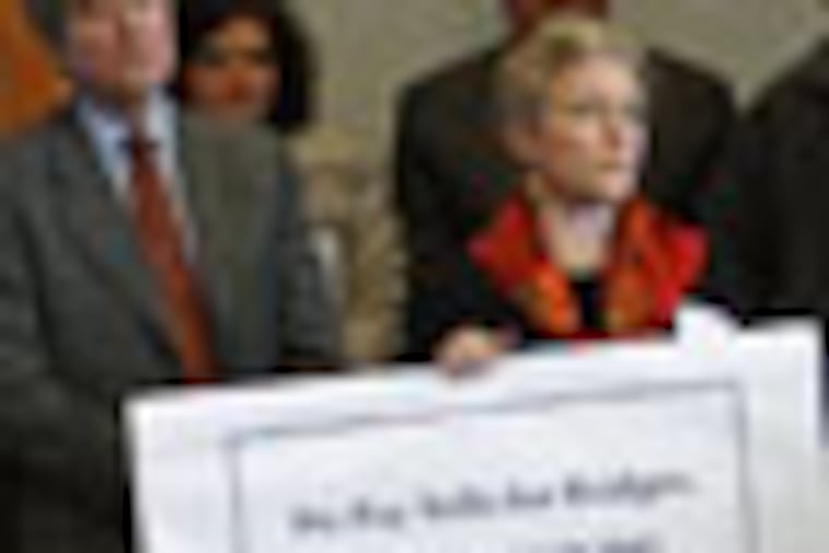 AAA spokeswoman Catherine L. Rossi waved a stack of letters that she said represented 15,000 anti-spending e-mails sent to board members and Gov. Rendell.