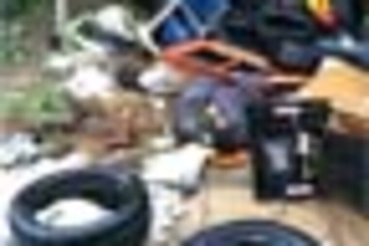 THE NO HOMES-no trash rule is likely what's keeping Merion Avenue between 49th and 52nd Street in West Philly looking a mess, aside from people who leave used tires, broken TVs and couches. At some point, this forgotten stretch of road became an outpost for illegal dumping, and black bags of trash are among the least-imposing items left behind. A broken-down van sits to the side of the road and is stuffed with used tires.