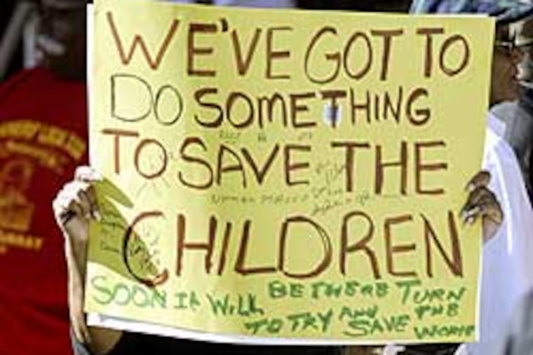 "It's vital to bring the sons out," said Wendell Jenkins of Wynnefield, there with Wendell Jr., 12, who carries the weight of worry at such a young age. "I would hate to lose my friends to gun violence. I want it to stop. I'm scared."