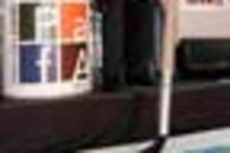 Marguerite Lenfest wielded her six-foot paintbrush with authority Wednesday, sloshing a squiggly sweep of yellow across a broad canvas laid out on the floor at the Pennsylvania Academy of the Fine Arts.