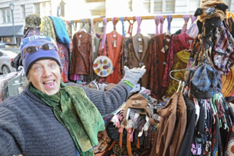 At the start of this iffy holiday season, a well-dressed woman in her late 50s stopped by Grace Gardner's fair-trade clothes and accessories stand at 18th and Walnut and, without the usual shopper's deliberation, began picking out the things she wanted.