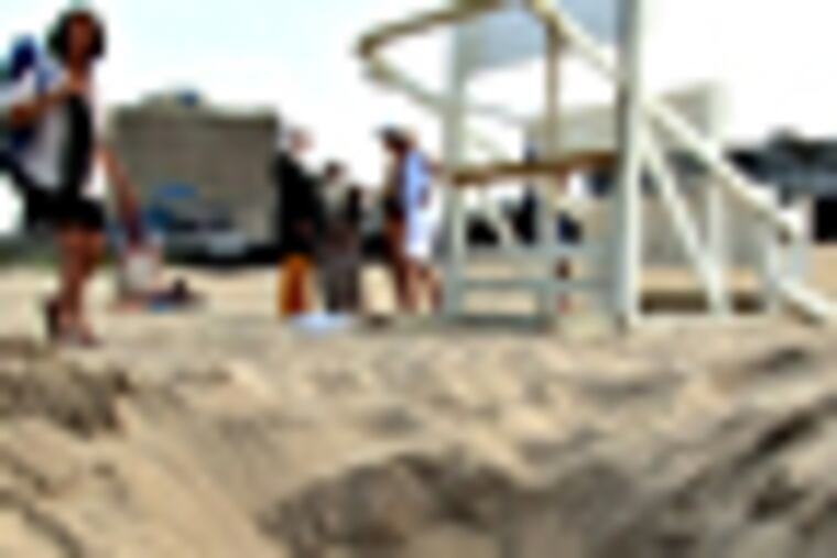 OCEAN CITY, N.J. - Whether they're just grinding their toes a few inches into the sand or carving out deep holes that look like moon craters by day's end, beachgoers seem to have an innate need to dig.