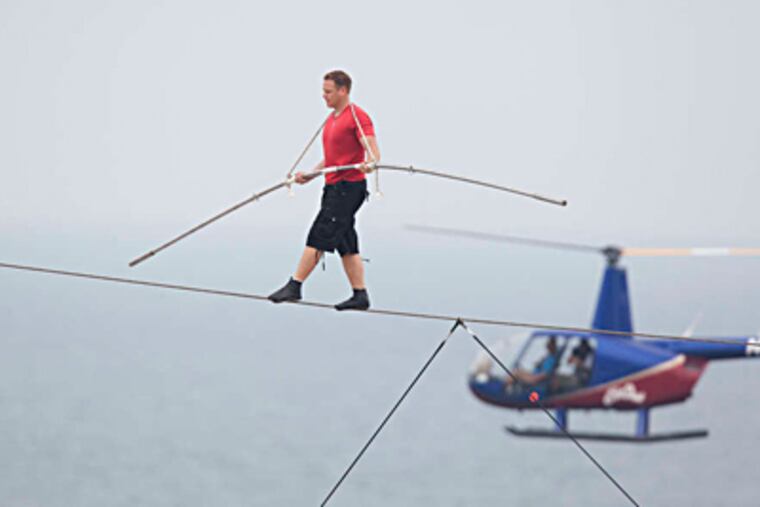 ATLANTIC CITY - This town would be the last place looking to minimize risk. So, unlike Niagara Falls, Atlantic City required no safety harness for the intrepid Nik Wallenda as he walked, on a sandy wire 100 feet above the beach, the 1,300 feet from one casino, the Atlantic Club, to another, the Tropicana.