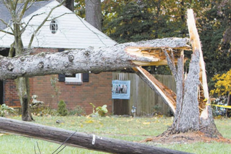 A falling tree knocked down power lines, exploded a transformer, and pierced the wall of an upstairs room in their Highland Avenue house.