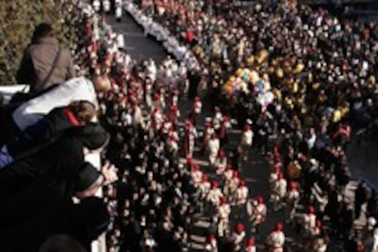 Vendors hawked beads, inflatable Santas, roasted peanuts, cotton candy, steamed corn and Turkish coffee while city residents watched the festivities from balconies and rooftops.