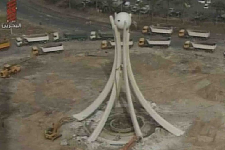 News reports said soldiers arrived early Friday to demolish the 300-foot monument, which was topped with a massive pearl as a nod to the island-state's pearl-diving heritage. Photos posted online after the destruction showed a pile of debris in place of the monument.