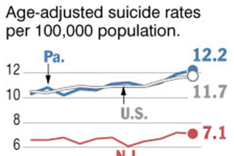 Pennsylvania's suicide rate, for example, is around the national average. New Jersey's typically is among the lowest.