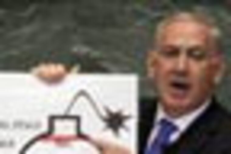 JERUSALEM - When Israeli Prime Minister Benjamin Netanyahu held up a cartoon-like drawing of a bomb during his speech at the U.N., he set off an explosion of jokes and mockery - but it also got plenty of attention.