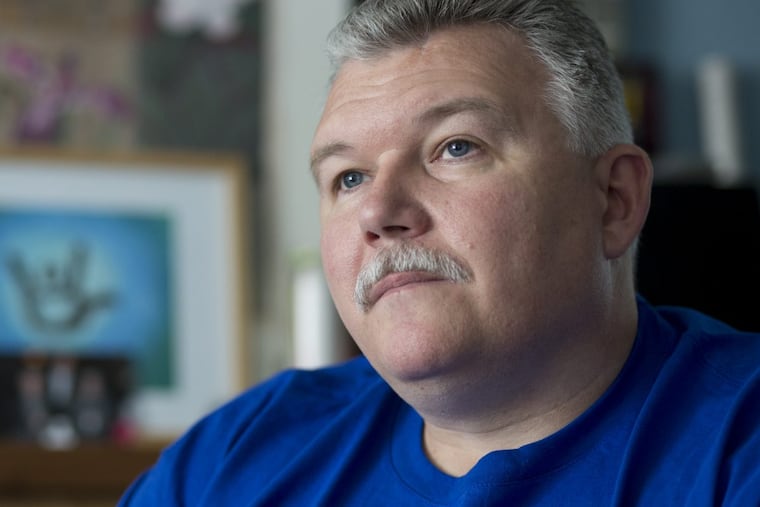 Paul Owens of the Sheriff’s Department sits in his home next to photos of his children. Owens was paralyzed when an elevator he was in crashed through the ceiling of its shaft at the Criminal Justice Center in 2016.Read moreMARGO REED / Staff Photographer