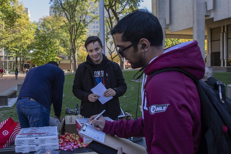 Last Tuesday, a week before Election Day, Smith and other staffers and volunteers milled around a table in the center of Temple's campus, calling out to passing students: "Pledge to vote! Free pizza!"