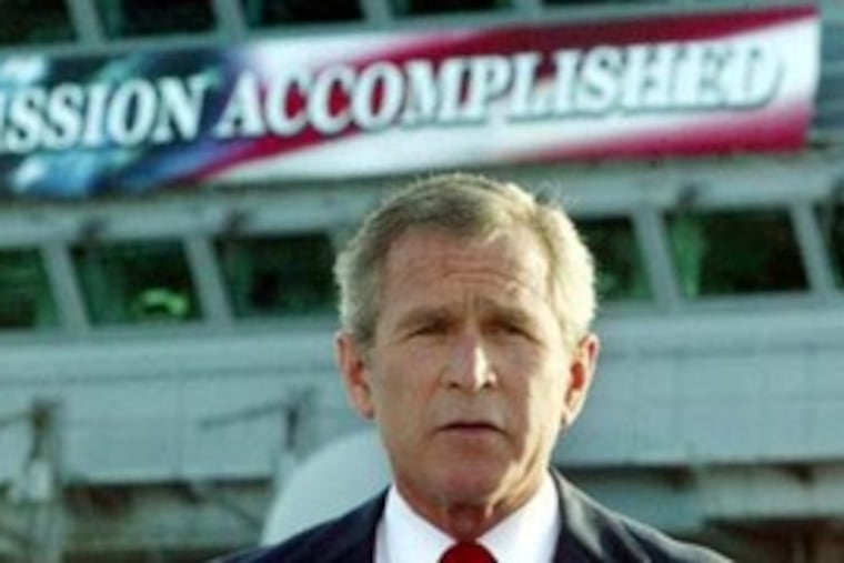 It's ironic that the president will veto the bill on the fourth anniversary of his now-infamous "Mission Accomplished" speech. In 2003, you'll recall, the president declared that major combat operations in Iraq were over.