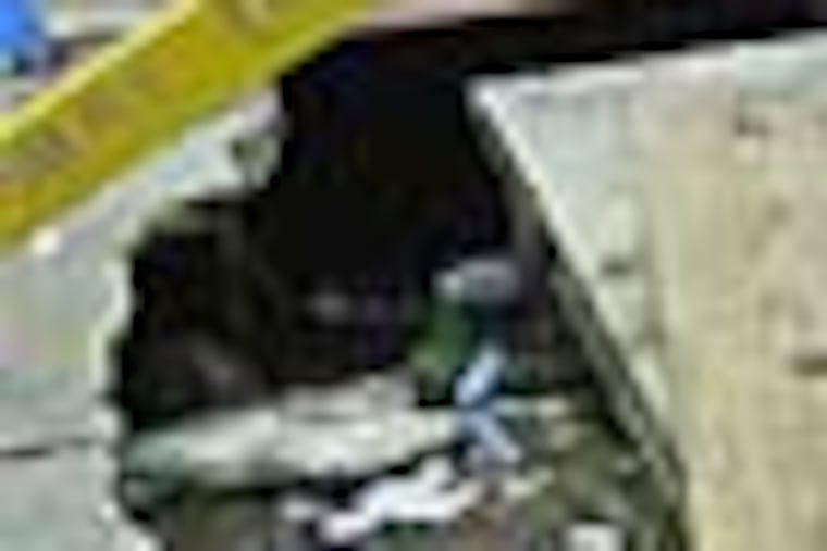 WHO BROKE THE STREET? The hole was created by a broken inlet lateral, a pipe that carries sewage from houses to the sewer line, Water Department spokesman John DiGiulio said. Water from the broken pipe eroded the street, causing it to cave in.