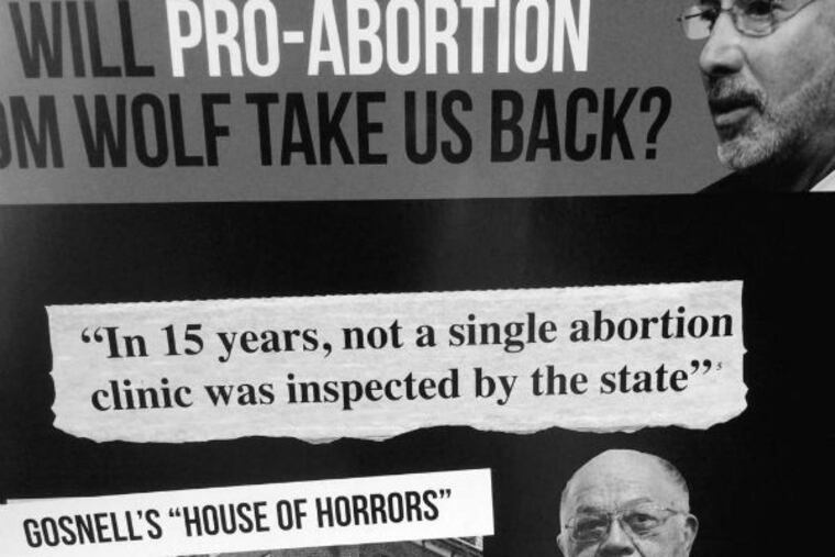 The headline ("Will Proabortion Tom Wolf take us back?") running over a photograph of Gosnell's clinic, complete with the refrigerator in which he stored aborted fetuses, implies that Wolf's dangerous proabortion agenda will enable the Kermit Gosnells of the commonwealth, when the opposite is true.