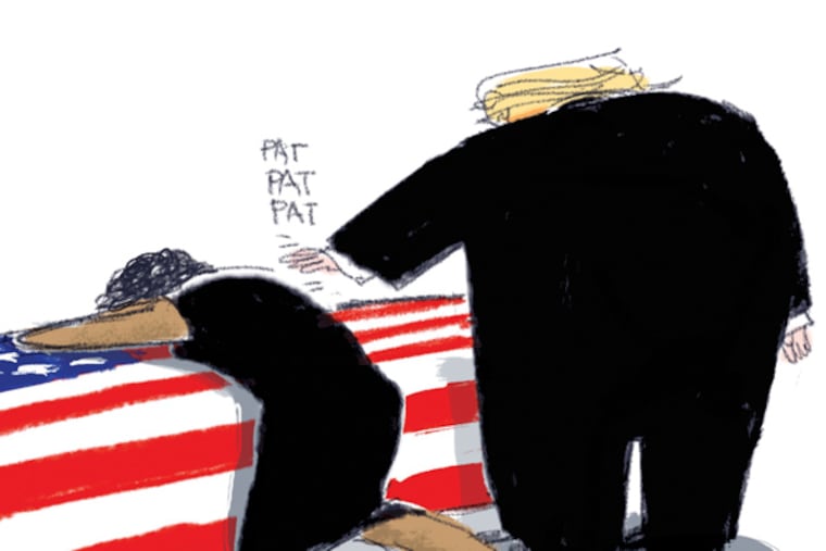Both Tim Campbell and Pat Bagley went after Trump over his response to the family member of the four soldiers who died after an ISIS assault on American troops in Niger. The mother of Sgt. La David Johnson said Trump showed "disrespect" during a telephone call to extend condolences.
