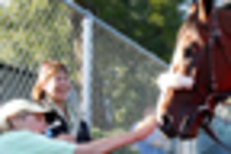 LOUISVILLE, Ky. - Jamie Wyeth stood off to the side of the grassy plot outside Barn 42, hard by Longfield Avenue, silently sketching the crowd watching the colt his wife owns taking a bath. If one scene could describe the Kentucky Derby experience, that would be it.