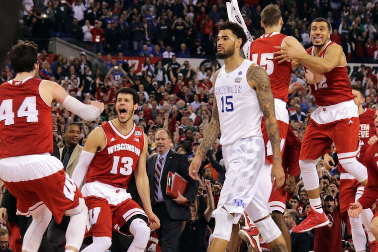 It started with a tough, twisting shot by a future NBA player, Sam Dekker (16 points), and kept going when Nigel Hayes tipped in an air ball after the shot clock had clearly turned to zero. No violation was called, and in a game full of shaky officiating that left both coaches screaming, it generated momentum for the Badgers and left Kentucky flat.