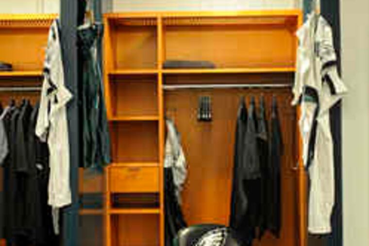 Down the corridor, 75 paces away, is McNabb's old locker, nestled in the corner of a spacious room. It is like the other 60 or so stalls - 4 feet by 8 feet, green, and paneled with wood. But the locker adjacent to his was left empty to give him additional room.