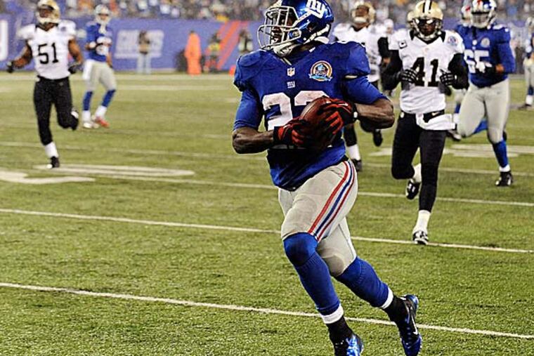 David Wilson, RB, Giants. The rookie speedster had his long-awaited coming-out party with 100 yards and two TDs on the ground, punctuated by a 98-yard kickoff-return score. Wilson will surely get more opportunities to dazzle, especially if Ahmad Bradshaw's balky knee continues to limit him.