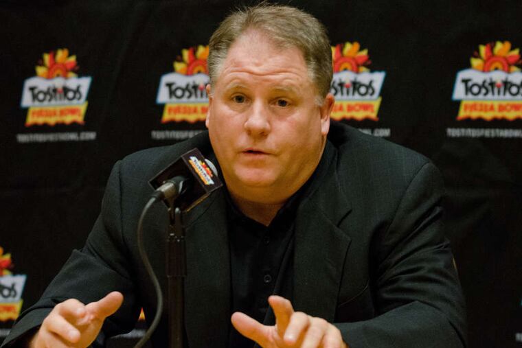 One of the first questions Oregon coach Chip Kelly - perhaps the front-runner to take over as coach of the Eagles - was asked after arriving in Arizona for the Fiesta Bowl was about the possibility of coaching in the NFL.