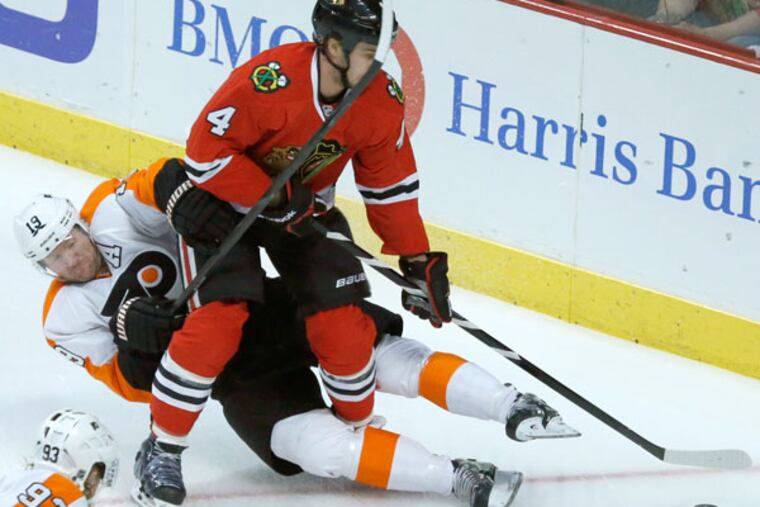 Despite losing two straight heading into Chicago, the Flyers had an opportunity to salvage a winning record on the trip if they could have beaten the Blackhawks. Before the game, the players talked about its being a measuring stick to see how far they had come from their franchise-worst 1-7 start.