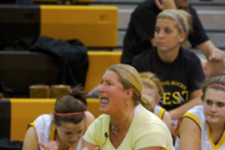At Pennridge, Brooke and Dave Martin, married for seven years, coach the girls together. Brooke is the head coach and Dave is the top assistant.