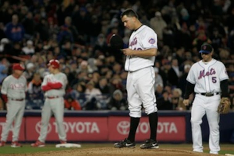 After Utley's two-out single in the third, Perez walked the next four batters then hit No. 8 hitter Rod Barajas, forcing in a third straight run before he left last night's 5-2 Phillies win at Shea Stadium.