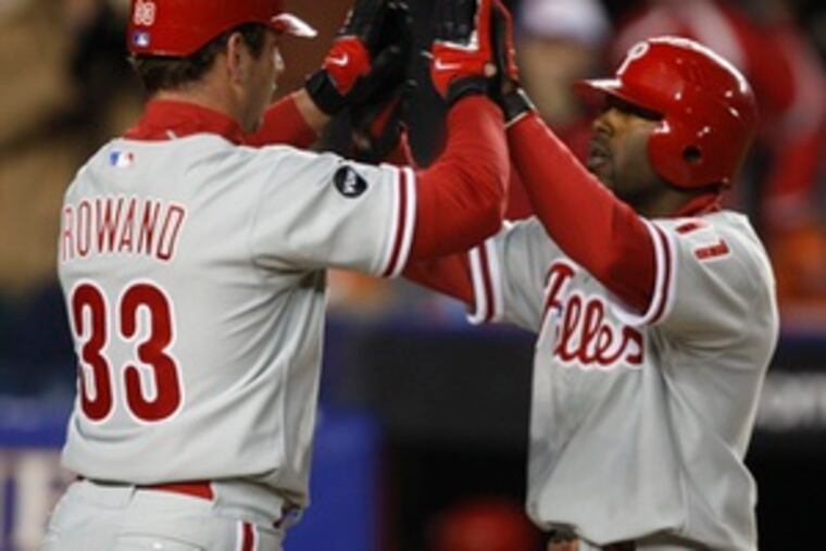 Rollins' triple in the sixth inning Wednesday led to an insurance run in that 5-2 win. Last night, he homered off Tom Glavine to start the game, then drove in Aaron Rowand with a two-out homer in the second to gave the Phillies a 3-1 lead.