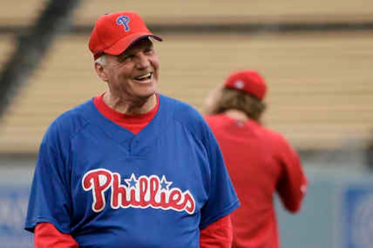 "Let me think," Manuel said. He was in the Phillies' dugout, leaning forward with both arms on the railing, chin on the railing, watching the Dodgers take batting practice. You know how you can tell when people are happy just by the aura around them? That was Manuel yesterday, yelling something at Manny Ramirez after he was finished hitting, talking baseball with a few of his lieutenants, now intrigued by a memory from a time long ago.