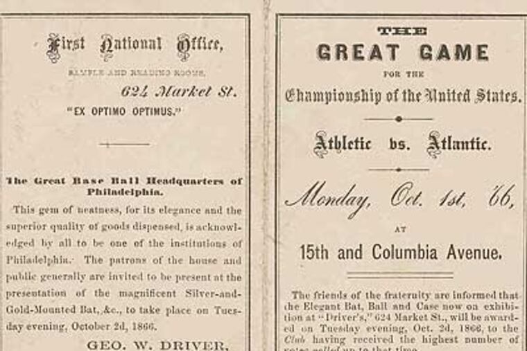 It was handed out to fans who, in a virtually unprecedented move, were charged 25 cents to watch the Oct. 1, 1866, game between Philadelphia's Athletics and Brooklyn's Atlantics at a 15th and Columbia ball field.