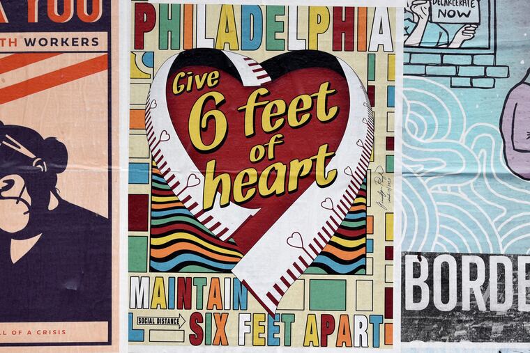 Covering the coronavirus I have “collected” photos of yellow caution tape, scenes of not Center City, and (with some by my colleagues) statues wearing masks.