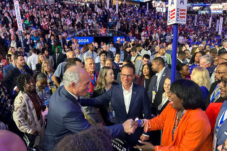 Parker attended the convention as a “party leader or elected official” delegate, more commonly known as a superdelegate, and she stood next to Pennsylvania Gov. Josh Shapiro as he delivered the state’s votes to Harris in a ceremonial roll call vote.